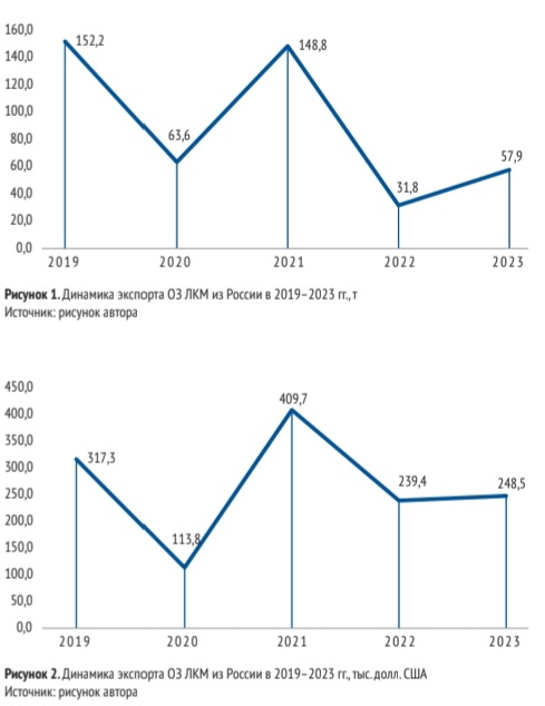 Таблица 1. Динамика экспорта по видам ОЗ ЛКМ из России в 2019–2023 гг., кг