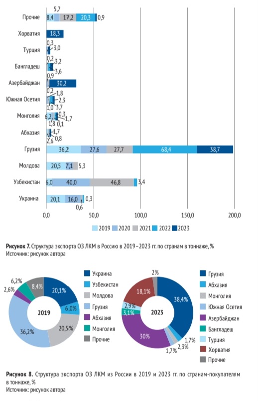 Таблица 5. Структура экспорта ОЗ ЛКМ в Россию по основным странам -покупателям в 2019–2023 гг. по тоннажу, %