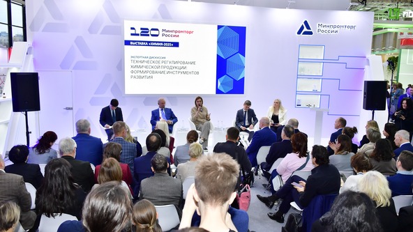 На стенде Минпромторга России был организован ряд отраслевых мероприятий, где специалисты рассматривали различные аспекты работы химической промышленности. Цикл мероприятий открылся экспертной сессией «Техническое регулирование химической продукции: формирование инструментов развития», где специалисты обменивались мнениями по ключевым направлениям развития стандартизации в нефтехимическом комплексе. В первый день выставки прошли еще две экспертные сессии: «Стратегия развития российской отрасли катализаторов», на которой обсуждались вопросы объемов отечественного рынка катализаторов для процессов химии, нефте- и газохимии, и сессия «Эффективные ВЭД-практики: как справляются с вызовами экспортеры и импортеры». На последней участники делились опытом преодоления барьеров в международной торговле, обсуждали вопросы логистики, таможенного регулирования, сертификации и доступа к зарубежным рынкам.